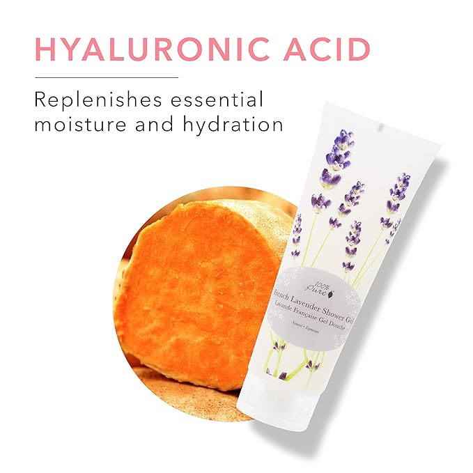 100% PURE French Lavender Shower Gel Natural Foaming & Hydrating Body Wash - Deeply Moisturizing Gentle Soap Cleanser for All Skin Types, Even Sensitive - Gluten-Free - 8 Fl Oz