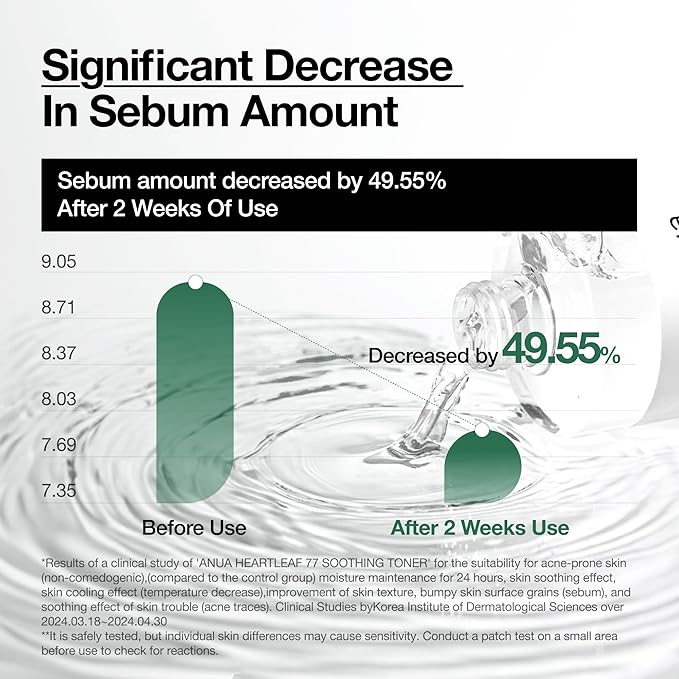 - SOOTHING FACE TONER : Infused with the highest concentration of Heartleaf Extract, known best for it's calming effects, this toner is designed to soothe, tone, hydrate, and balance the skin's pH level.