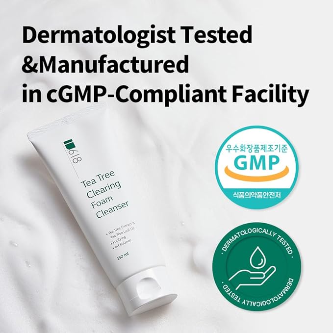 1.618 Korean Foam Face Wash - pH 6.5 Balanced Tea Tree Cleanser – Salicylic Acid & Plant-Based Formula for Blemish-Prone, Oily Skin | 5.07 oz