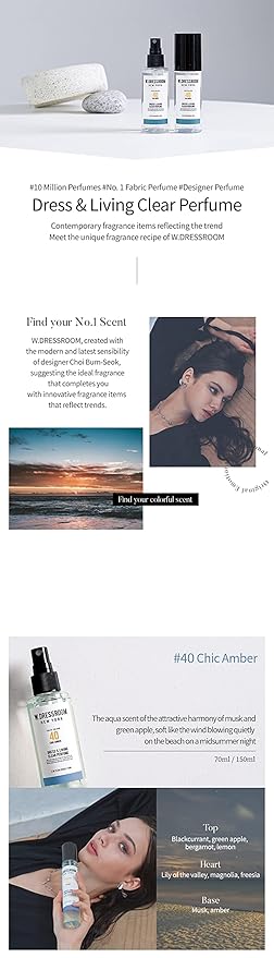 W.Dressroom No.40 Chic Amber Living Clear Perfume, Body Mist & Fabric Spray Deodorizer, Alcohol-Free Water-Based, Odor Neutralizer for Clothes, Bedding & Room, Travel Size 2.36 oz