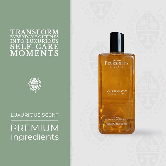 Pecksniff's Men's Luxurious Moisturizing Bath & Shower Gel | Premium Cleansing Men's Body Wash | Captivating Fougere Accord Mens Shower Gel | Charismatic Scent | 500ml