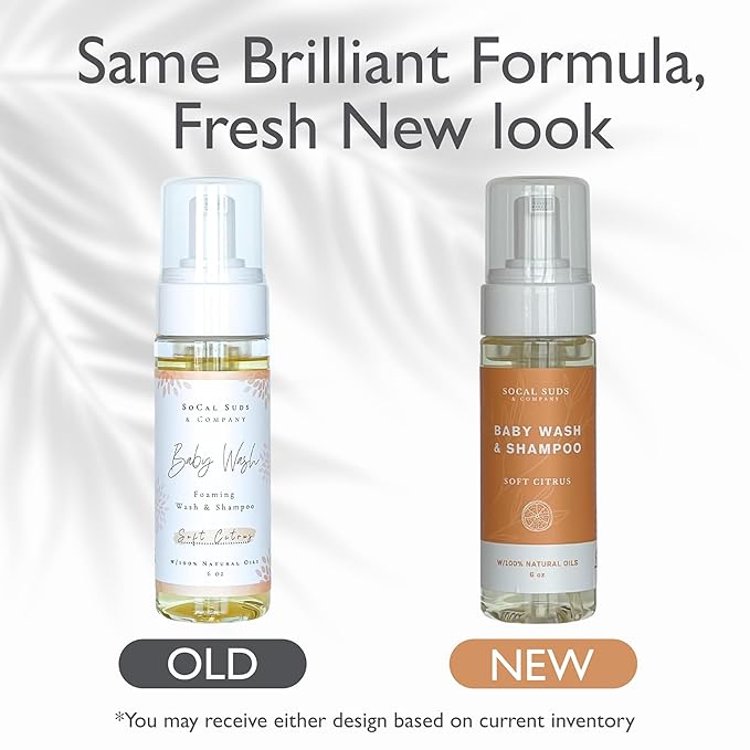 SoCal Suds & Company - Organic Foaming Baby Wash & Shampoo - Gentle Cleansing Newborn Body & Hair Soap for Sensitive Skin - Clean Natural Soothing Ingredients - Soft Citrus, 6oz, 2-Pack