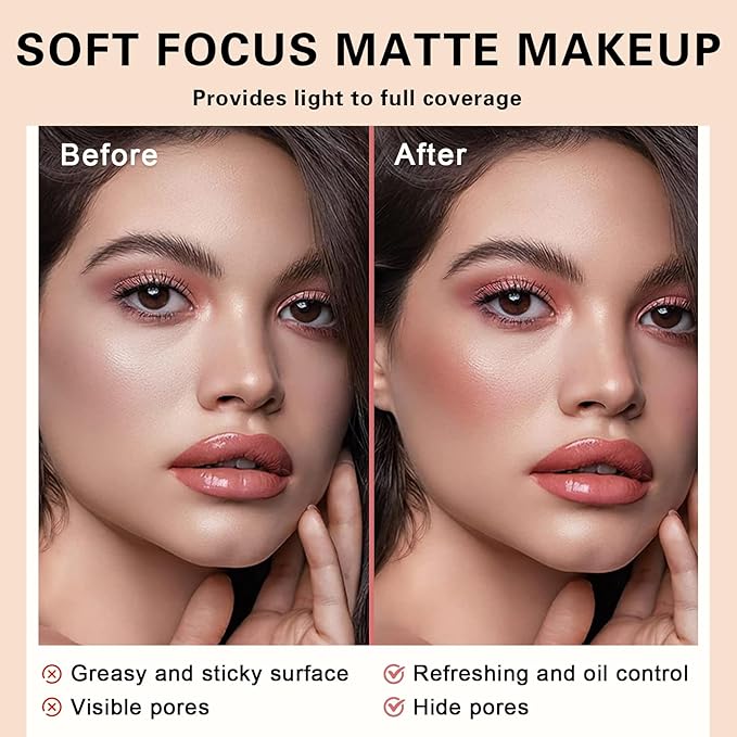 - 【Oil Control and Long-lasting】Excellent oil control ability,can absorb excess oil,maintain the water and oil balance of the skin,and fix the foundation on the face,will not fall off or move easily,and can maintain a delicate makeup for a long time even in the hot summer